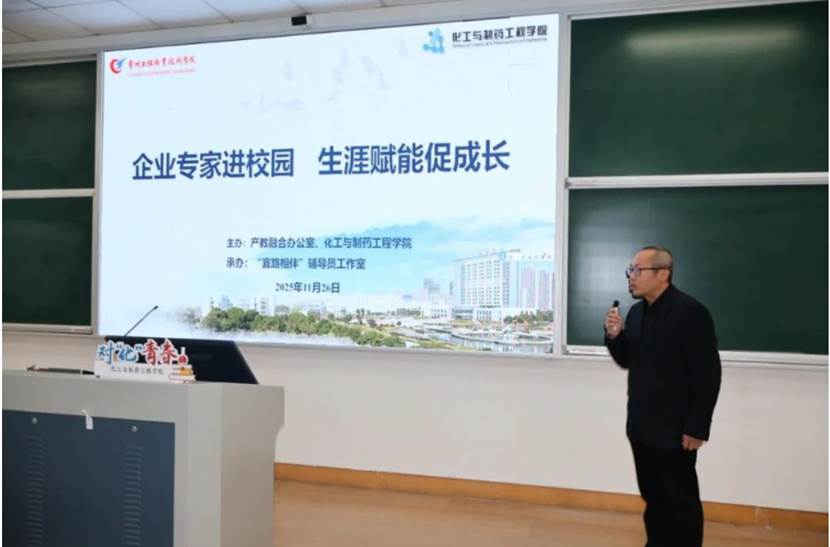 为助力学生拓展行业视野、明确成长路径,化工与制药工程学院持续通过“对‘化’青春”栏目开展生涯赋能系列行动。11月26日,学院联合产教融合办公室,成功举办“企业专家进校园,生涯赋能促成长”主题交流活动。校产教融合办公室副主任裴忠贵、球友会党总支副书记周玳宜、副院长乔奇伟出席活动,与学子共同聆听行业前沿声音,对话企业实战经验。
